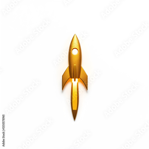 Rocket gold metal icon on white background. Generative AI