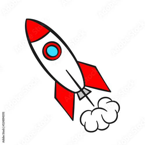 Rocket. Isolated on white. Cartoon. Vector illustration. Isolated on white background
