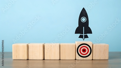 rocket, launch, target, bullseye, block, wooden blocks, business, growth, success, goal, achievement, strategy, startup, innovation, progress, ambition, vision, future, concept, symbol, illustration, marketing, sale, project, planning, development, career, opportunity, potential, aim, objective, start, beginning, journey, aspiration