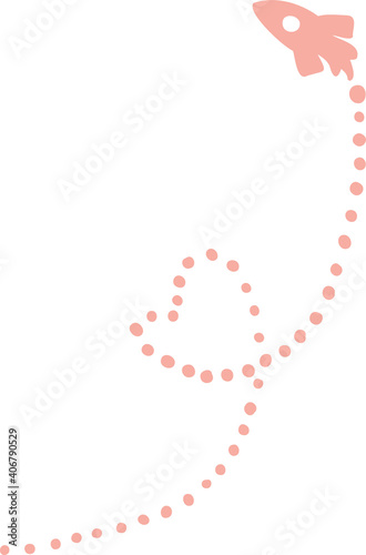 Rockets with hearts trail vector elements hand drawn, isolated on white background