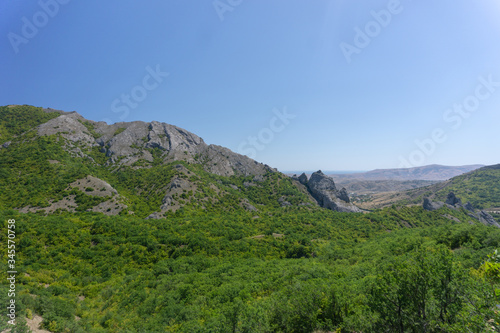 mountain, landscape, sky, nature, mountain, panorama, green, rock, blue, summer, hill, cloud, tree, travel, forest, view, vale, panoramic, scenic, mediterranean, cloud, grass, tour tourism, tree, stone