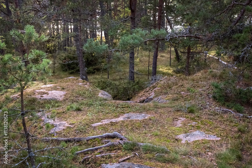 Rocks, boulders and holes in the forest. Photo