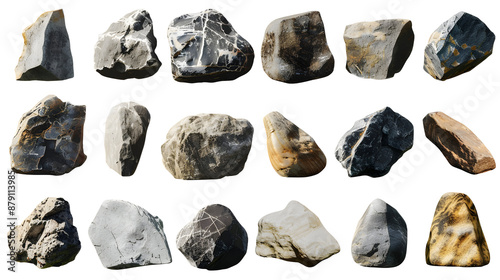 grey, rock, stone, diverse, diversity, material, multiple, real, realistic, rough, variation, cliff, cut-out, blank, collection, granite, isolated, set, shape, white, black, boulder, object, pattern, texture, background