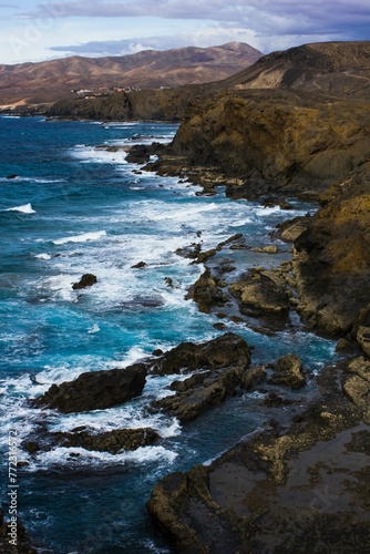 fuerteventura, spain, canary, island, landscape, nature, environment, rock, stone, volcanic, beach, shore, coast, atlantic ocean, water, wave, splash, scenic, view, beautiful, travel, tour tourism, vacation, sky, cloud, outside, vertical