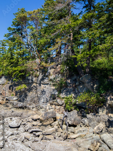 Rocky landscape at Larrabee State Park in Bellingham Washington during summer.