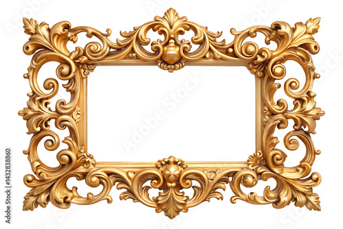rococo ornament frame noble golden vintage style isolated on white background PNG. GENERATIVE AI