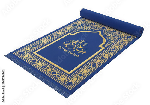 prayer, mat, islamic, muslim, religious, worship, rug, carpet, blue, rolled, geometric, pattern, calligraphy, arabic, script, traditional, cultural, spiritual, devotion, faith, mosque, ramadan, eid, isolated, transparent, background, object