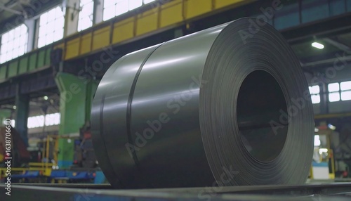 steel, rolled, metal, factory, industrial, manufacturing, production, machinery, warehouse, large, dark, black, coil, circle, object, metalwork, processing, product, industry, facility, equipment