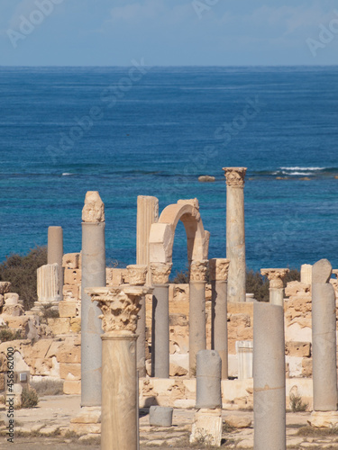 africa, libya, mediterranean sea, column, column, horizon, roman, ruin, ruin, sea, style