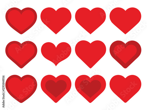 Romantic Abstract Love Hearts Symbols in Various Shapes for Valentine's Day.