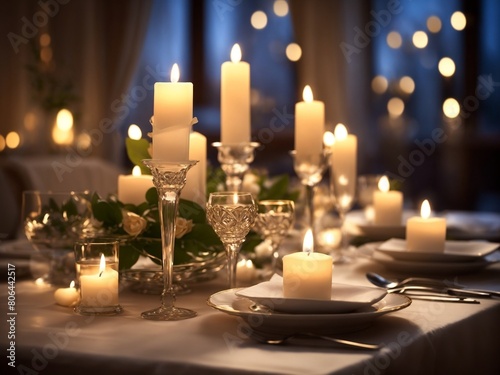 "Romantic Candlelit Dinner: Elegance and Intimacy in Soft Illumination"