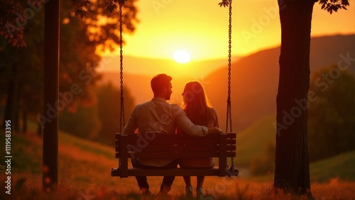 couple, swing, sunset, romance, silhouette, nature, love, peaceful, gold, golden hour, warm tones, scenic, serene, togetherness, oneness, evening, human relationships, scenic view, dreamy, idylli, bonding, picturesque, timeless, relaxing, beauty