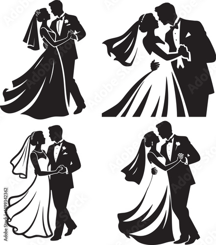 wedding, bride, dress, silhouette, vector, woman, illustration, couple, fashion, groom, love, people, marriage, dance, beauty, elegance, party, art, cartoon, black, lady, gown, married, wife, celebration, nubes, valentine, romance, romantic, happiness, dating, young adult, kiss, embracing, human, kissing, anniversary, memory, dusk, pair