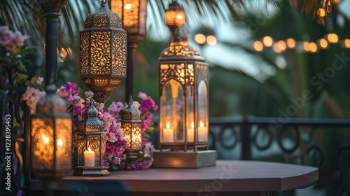 Romantic Evening with Moroccan Lanterns and Flowers