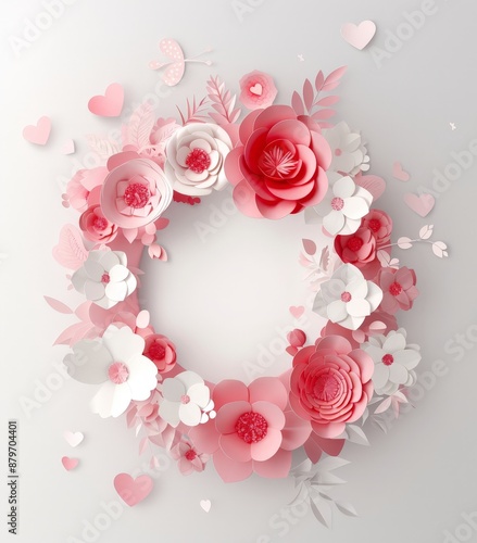 Romantic Floral Heart Wreath with 3D Paper Flowers on Elegant Background copy space
