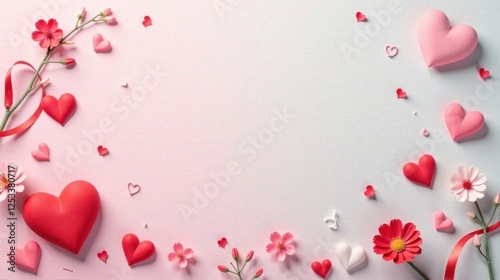Romantic Pastel Hearts and Blossoms Design for Valentine's Day or Anniversary Greeting Card