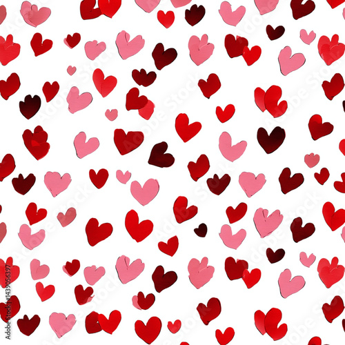 Romantic seamless pattern featuring red and pink hearts in a playful arrangement, clear background --v 7.0