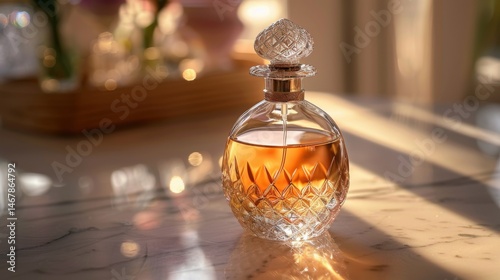 perfume, fragrance, bottle, luxury, beauty, elegant, glasses, sunlight, floral, soft light, feminine, scent, cosmetic, product, romantic, pink, flower, marble, shadow, highlight, glow, sparkle, crystal, vintage, stylish, still life, high-end, delicate, chic, dreamy, bright, design, visual, natural light, composition, perfume bottle, cosmetic