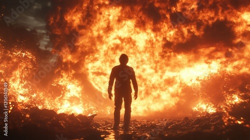 Romantic Sunset Silhouette of Couple on Beach with Fire Orange Sky and Ocean Waves