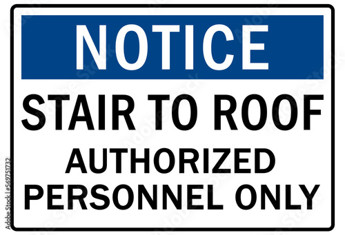 Roof access sign and labels stairs to roof authorized personnel only