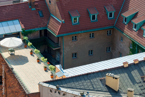 center, outdoors, daytime, view, aerial, urban, mediaeval, colours, colourful, structure, beautiful, town, building, landmark, traditional, house, culture, architecture, image, tower, european, roof, city, city landscape, downtown, historic, street, up high, picture, photograph, residential, tile, beauty, window, exterior, red, top, ancient, travel, color image, color photography