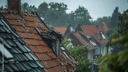 roof, window, house, being, damaged, hail, high, wind, roof, house, building, architecture, window, tile, home, city, sky, red, old, brick, construction, town, view, urban, chimney, europa, travel, tile, residential, church