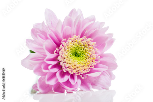 rosa blomma isolerat mot vitt med spegling
