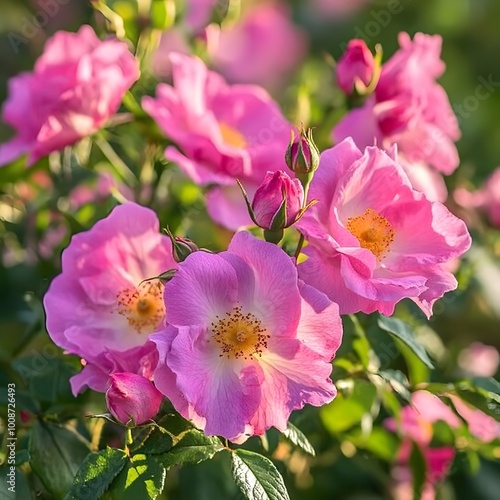 Rosa Damascena, known as the Damascus rose - pink, oleaginous, flowering, deciduous shrub plant. Valley of Roses. Close-up. Taillight. Selective focus