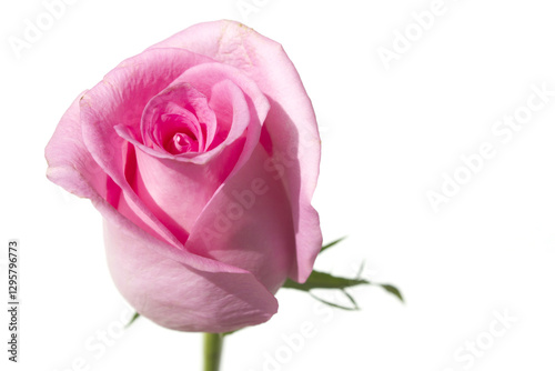 rose, flower, fresh flower, pink, white background, stem, plant, nature, love, valentine, single, blossom, romance, floral, bud, bloom