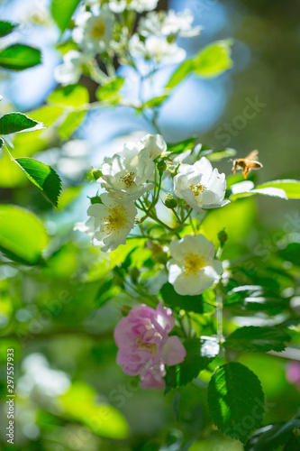 Rose flower, seven sister flower close-up, blooming outdoors in spring after the rain,Rosa multiflora Thunb. var. carnea Thory