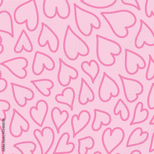 Rose love heart pattern illustration. Cute romantic pink hearts background print. Valentine s day holiday backdrop texture, romantic wedding design.