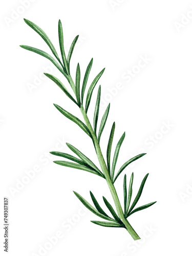 Rosemary sprig isolated on transparent background. Watercolor element for the design of fabrics, wallpapers, cards