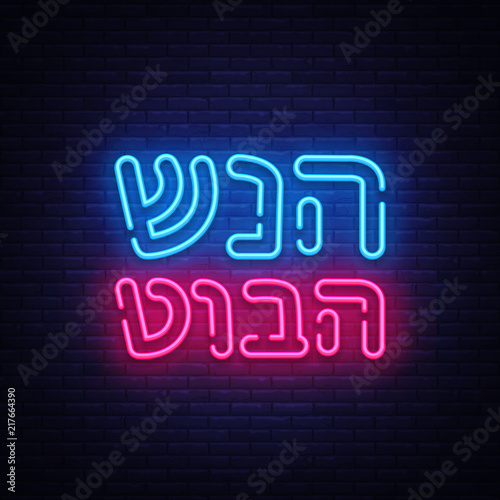 Rosh hashanah greeting card, design template, vector illustration. Neon Banner. Happy Jewish New Year. Greeting text Shana tova on Hebrew. Rosh hashana Jewish Holiday. Vector Design Element