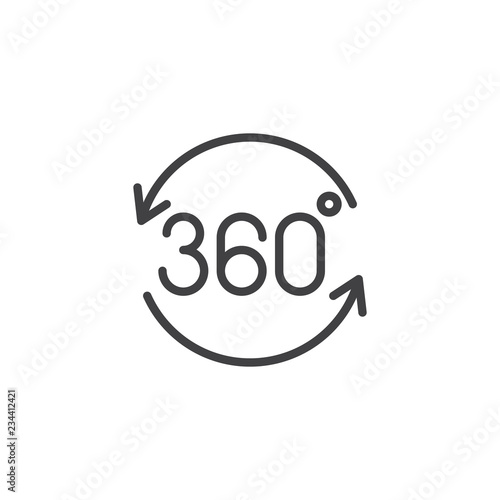 Rotation 360 view outline icon. linear style sign for mobile concept and web design. Angle 360 degrees simple line vector icon. Symbol, logo illustration. Pixel perfect vector graphics
