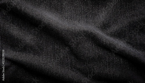 Rough Rich Detailed CloseUp of Vintage Black Denim Fabric, Showcasing Distinct Textures and Grainy Surface, Ideal for Graphic Design and Fashion Inspiration