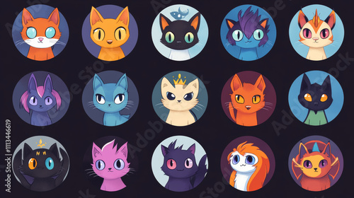 frame, round, avatar, circle, fantasy, game, cute, magic, tail, cat, crown, hat, animal, pony, kitten, asset, broomstick, design, user, interface, template, element, border, fox, frog, sorcerer, shape, isolated, decor, character, ear, cartoon, angel, eye, vector, graphic, illustration, halloween, framework, symbol, wing, gaming, empty, gui, neon, collection, background, blank, set