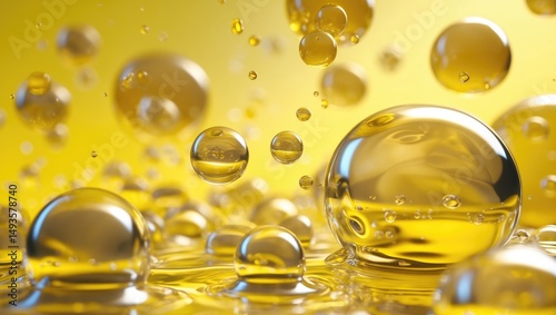 Round drops of golden serum or oil set against a background