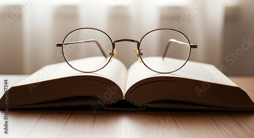 Round Glasses Resting on an Open Book A Symbol of Knowledge and Learning