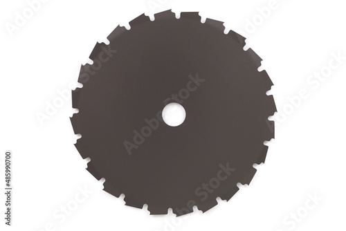round metal serrated cutting disc for lawn mower trimmer on a white isolated background