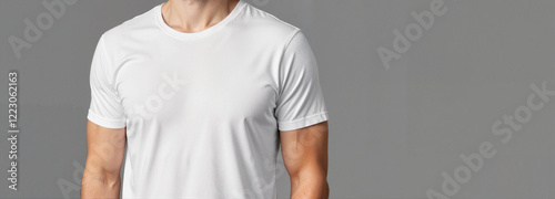 t-shirt, man, white, grey, casual attire, apparel, clothing, sample, model, fashion, male, torso, indoor, design, blank, visual, template, promotional, modern, simple, studio, advertisement, branding, comfort, trendy, minimalist, garment, presentation, stylish, summer, fit, young, neutral, clean, relaxed, marketing, merchandise, fashion industry, menswear, showcase, contemporary, versatile, plain, promotional item