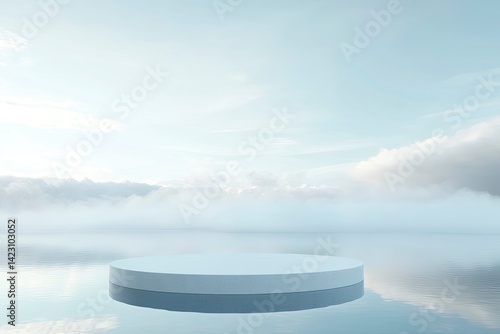 platform, float, round, smooth, minimalist, calm, peaceful, clean, soft, serene, water, sky, cloud, fog, landscape, nature, scene, background, presentation, display, showcase, product, photo, design, art, visualisation, template, advertisement, web