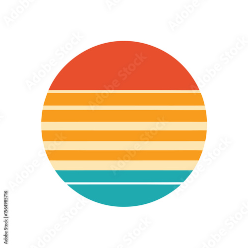 round, retro, sunset, icon, soft, stripes, pattern, vector, line, illustration, graphic, scene, colours, flat, circle, decor, style, classic, minimal, warm
