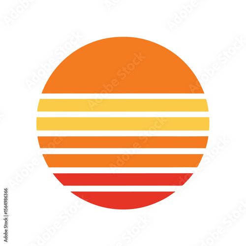 round, vector, icon, retro, striped, sunset, simple, style, flat, circle, design, vintage, illustration, graphic, scene, sun, band, colours, gradient, horizontal, clean, minimal, soft, classic, decor, art, line, symbol, contrast, background, segment