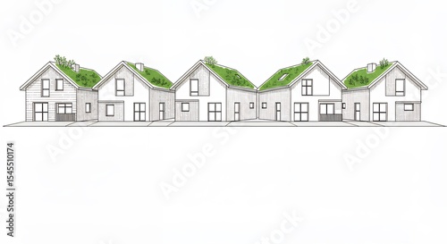 house, architecture, design, building, home, residential, row, green, roof, modern, sustainability, development, plan, illustration, drawing, vignetting, urban, housing, sustainable, environmental, eco, rooftop, exterior, construction, plan, line, grey, white, vector, simple, clean