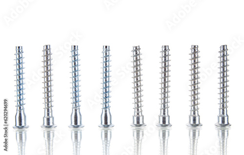 screw, fixing, head, hexagon, spiral, repair, stainless, technology, engineering, hardware, row, equipment, mechanic, fastener, bolt, metallic, construction, nut, thread, work, iron, industrial, chrome, tool, industry, metal, steel, isolated, white, background