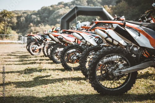 motocross, bike, motorcycle, competition, racing, extreme sport, offroad, motorsport, adventure, speed, adrenalin, challenge, power, rider, event, tournament, championship, lineup, preparation, starting line, waiting, anticipation, grass, field, nature, landscape, sunny, summer, sport, hobby, lifestyle, transportation, vehicle, engine, wheel, tire, exhaust, design, performance, technology, equipment, action, recreation, fun