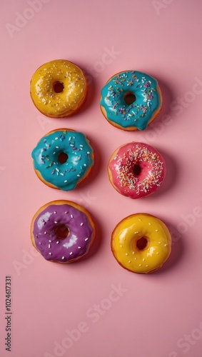 row, donut, different, colours, sprinkle, pink, background, sweet, glazed, dessert, food, donut, pastry, cake, sugar, tasty, delicious, snack, bakery, calorie, icing, round, unhealthy, baked, candy, eat, chocolate, white, breakfast, frosting, fresh, dough, pattern, bright, treat, lay, topping, party, confectionery, fat, flat, view, circle, celebration, decorated, colourful, blue, assortment, diet