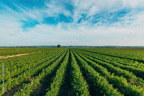 carrot, plantation, field, vegetable, organic, crop, agriculture, agricultural, cultivation, cultivated, farming, farmland, nature, landscape, growth, industry, plant, flora, no people, background, countryside, green, lush, country, rural, plain, sky, cloud, horizon