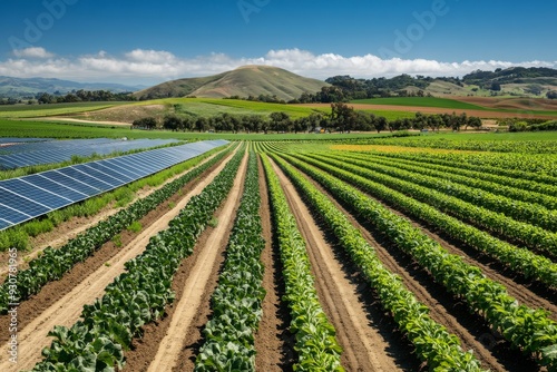 sustainable, farming, aerial, view, crop, agriculture, solar, panel, irrigation, diverse, farmland, landscape, green, energy, technology, organic, crop, row, rural, hill, nature, sustainability, environment, renewable, agricultural, innovation, produce, water, conservation, hillside, sunny, day, dirtied, management, efficiency, local