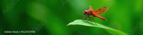 Ruby-red dragonfly rests gracefully atop a lush green leaf's point , insect, wild, beautiful